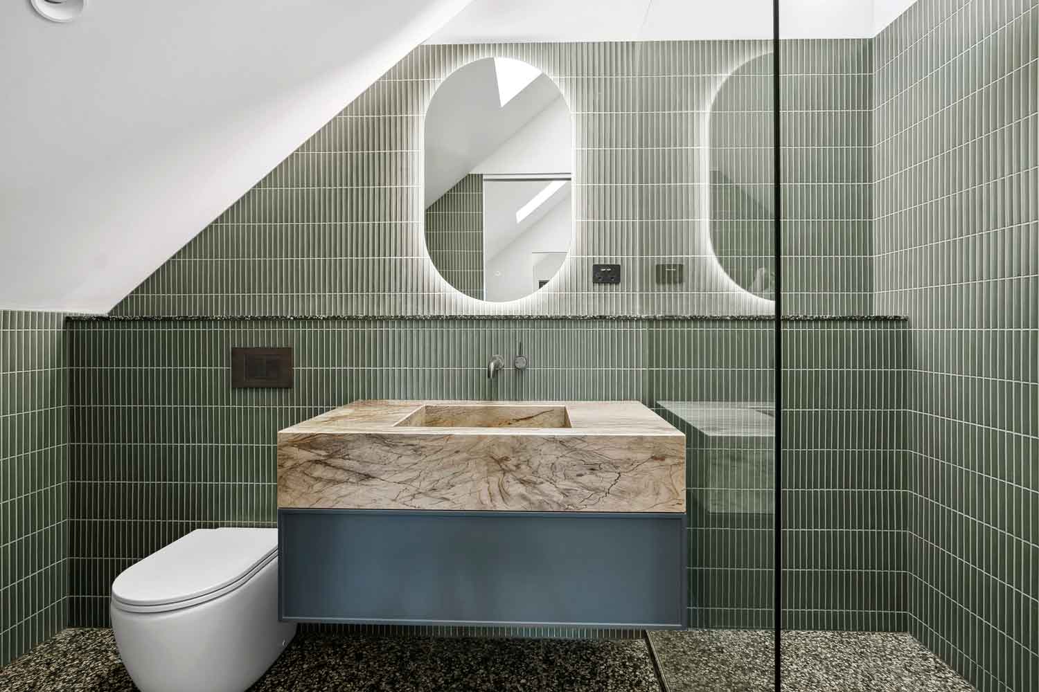 The private bathroom offers underfloor heating, a large circular bath ideal for soaking and relaxing, along with an oversized walk-in shower. A separate laundry offers both a washer and dryer.